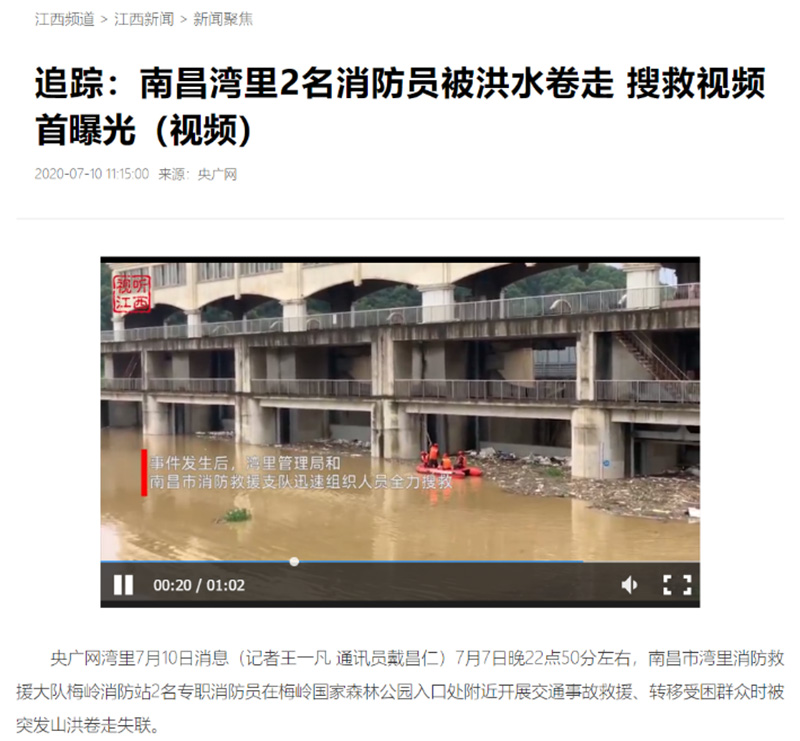 全媒體報道:南昌灣里2名消防員被洪水卷走 搜救視頻首曝光