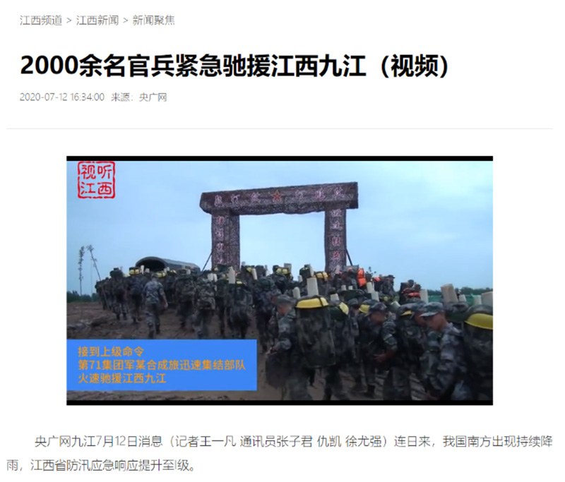 全媒體報道:2000余名官兵緊急馳援江西九江