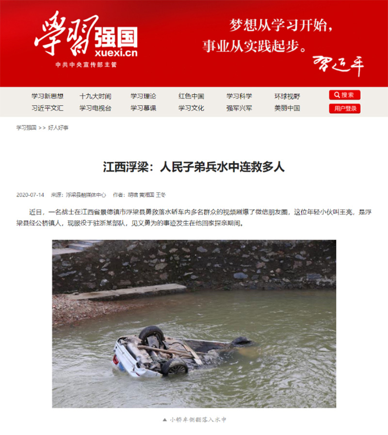 《學習強國》轉(zhuǎn)載:江西浮梁:人民子弟兵水中連救多人