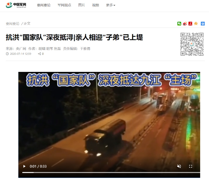 《中國軍網(wǎng)》轉(zhuǎn)載:抗洪“國家隊”深夜抵潯 親人相迎“子弟”已上堤