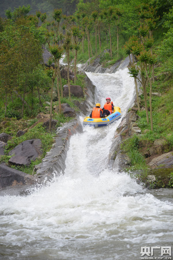 當(dāng)天下午1點(diǎn)多鐘,各地游客紛涌而至,大家穿上泳衣?tīng)?zhēng)先恐后地坐上皮筏艇,體驗(yàn)水上極速的樂(lè)趣。在河道中,皮筏艇一個(gè)接著一個(gè)從上游漂下,游客們一路尖叫一路歡笑,讓人心跳加速,大家盡情地享受著河水帶來(lái)的清涼,大呼過(guò)癮。來(lái)自陜西的陶女士漂完全程后,開(kāi)心地說(shuō):“婺源不僅風(fēng)景很美,漂流也非常的刺激過(guò)癮,不虛此行!