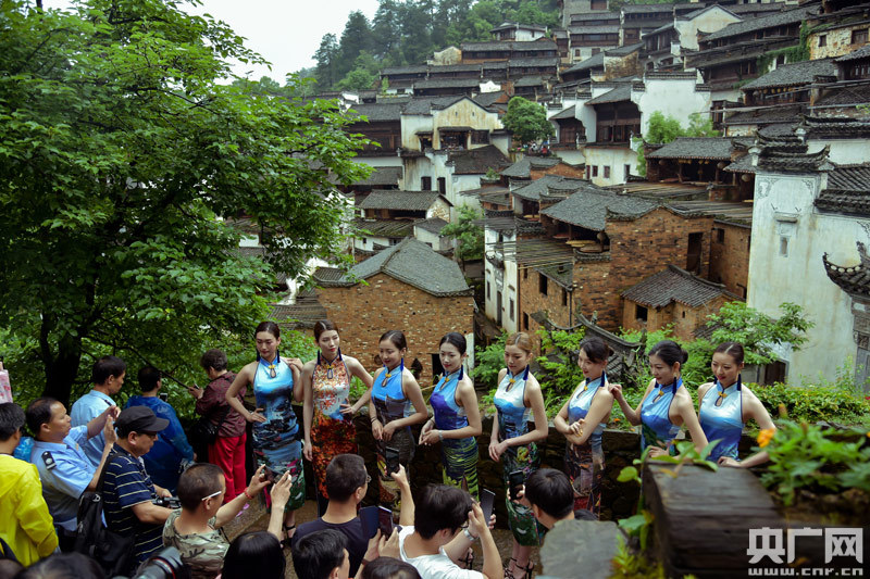 一場快閃以流動的旋律、瀟灑的畫意,展現女子典雅賢淑的氣質和篁嶺靚麗綽約的風采,讓風光旗袍與秀美鄉(xiāng)村完美融合。這場“旗袍秀”也展示著中國傳統(tǒng)服飾與這古老徽州村落文化巧妙融合的無限魅力。