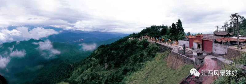 登上葛仙山,站在觀景平臺(tái),可見不遠(yuǎn)的峰頂、谷中纏繞了茫茫云霧,此時(shí)既有一種登高望遠(yuǎn)的愜意,更有一種身臨仙境的逍遙。葛仙山境內(nèi)峰崗疊聳、壑谷縱橫,山形地貌奇特,九條支脈如九條蒼龍,匯聚于大葛仙殿后,人稱“九龍竄頂”九龍匯聚之處為風(fēng)水極佳之地,在此遠(yuǎn)視可見武夷山主峰黃岡山和龜峰、靈山、鵝湖山等高山。山上還有仙人足印、石道人、香爐峰、試劍石等自然景觀,留有玉虛觀、大葛仙殿、三官殿、靈官殿、地母殿、玉皇殿(樓)等道教宮觀。同時(shí),葛仙山上的齋飯也是一絕。如果不能說(shuō)是天下第一,那至少在江西還沒(méi)有超過(guò)它的。雖然一桌皆是素菜,如辣椒、茄子、青菜、蘿卜等,但吃起來(lái)總感覺美味可口,勝過(guò)那些玉盤珍饈。好吃的原因有四條:一是廚藝絕。掌勺師傅很早就隨父親在山上學(xué)藝,每日固定炒這些菜已經(jīng)四十余年,廚藝爐火純青,雖身在小小山村中,但完全達(dá)到了“大國(guó)工匠”水平;二是食材鮮。絕大部分原材料都是道觀在高山上自種自養(yǎng),從小生產(chǎn)在仙境中味道自然鮮美;三是食油純。炒菜的油都是周邊香客進(jìn)貢的自榨菜籽油,雖然各家各戶的油比較雜,但他們都是各有所愿,對(duì)葛仙翁絕對(duì)忠誠(chéng),油必然好中選優(yōu),不會(huì)弄虛作假。四是火候好。選用什么木材燒很有講究,至于何時(shí)添柴、減柴、熄火更有竅門。
