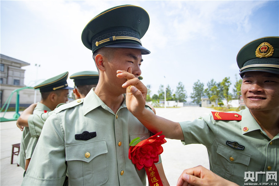 央廣網湖口9月2日消息(記者李竟成 通訊員張玉 吳寶冰)“送戰(zhàn)友,踏征程,默默無語兩眼淚,耳邊響起駝鈴聲……”8月31日,武警湖口中隊隨著《駝鈴》歌聲的響起,6名光榮退伍的武警官兵哭得像個孩子,因為今天他們即將告別生活多年的軍營,告別在一起朝夕相處多年的兄弟,內心深處有太多的不舍……
