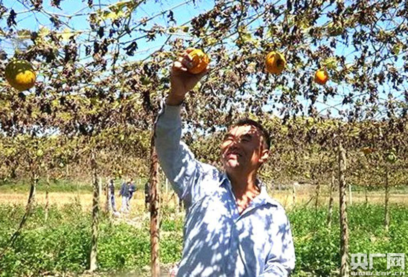 繆以成正在采摘成熟的吊瓜(央廣網(wǎng)發(fā) 通訊員供圖)
