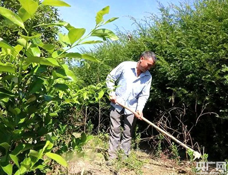 繆以成在為苗木除草(央廣網(wǎng)發(fā) 通訊員供圖)