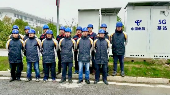 圖為中國電信江西公司的網(wǎng)絡(luò)工程師在鷹潭首個5G基站前整裝待發(fā)