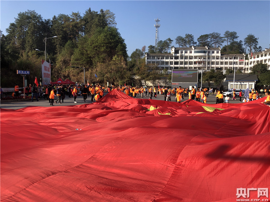 迷你組的終點(diǎn)站,選手們舉起一巨型國(guó)旗,高呼祖國(guó)萬(wàn)歲