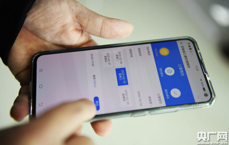 “掃二碼填信息,預(yù)約成功后,第二天在規(guī)定時(shí)段到就近網(wǎng)點(diǎn)領(lǐng)口罩,網(wǎng)上預(yù)約操作簡(jiǎn)單,口罩領(lǐng)取也沒扎堆聚集。”天九鎮(zhèn)居民曾保富領(lǐng)到口罩后,現(xiàn)場(chǎng)為旁邊群眾傳授起口罩預(yù)約“技能”。