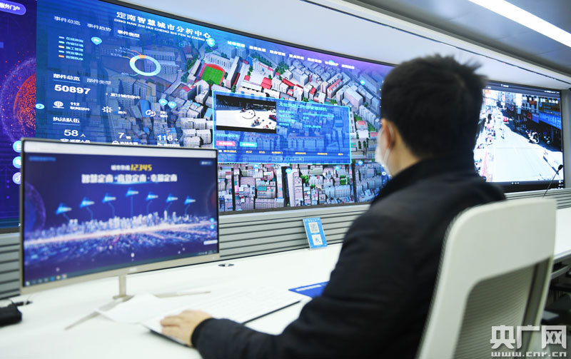 “為配合防疫工作,請(qǐng)布衣路超市門口聚集人員迅速散離,并請(qǐng)穿黃色夾克的女士佩戴好口罩……”2月16日,定南城區(qū)布衣路監(jiān)控視頻立柱上傳來一段廣播,而在智慧定南指揮中心,值班人員正盯著大屏幕,實(shí)時(shí)查看該處人群集聚散離情況。