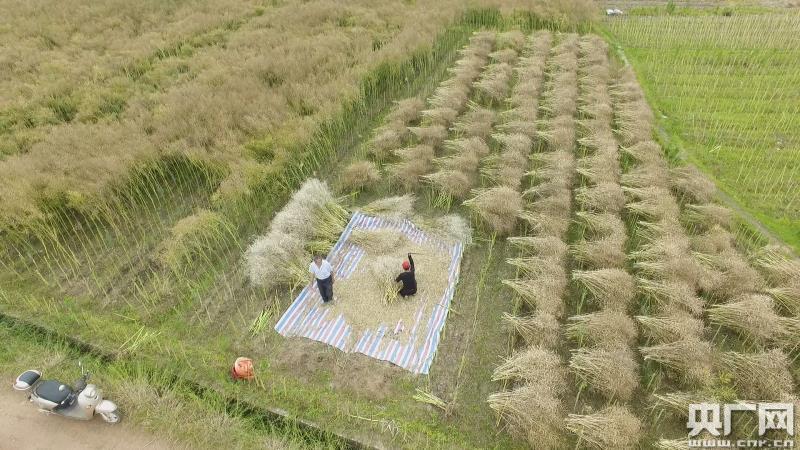 央廣網撫州5月14日消息(記者王一凡 通訊員付建榮 章登高)眼下正值油菜豐收季節(jié)。5月14日,在撫州市臨川區(qū)秋溪鎮(zhèn)萬畝油菜種植基地,大片成熟油菜顆粒飽滿掛滿枝頭,許多油菜種植戶三五成群分布田野,趁著晴好天氣忙碌收割油菜,搬運油菜秸稈、剝離篩選油菜籽,空中俯瞰,到處一派繁忙的豐收景象。
