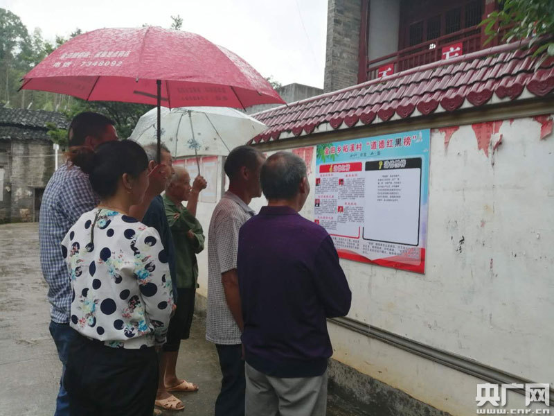 “紅榜”讓人倍感光榮,一旁的“黑榜”則讓人覺得臉紅!坝械狞h員在農(nóng)村環(huán)境衛(wèi)生整治中表現(xiàn)慵散、勁頭不足,對(duì)全鄉(xiāng)大局工作不積極參與,下期將點(diǎn)名公榜。”、“道德紅黑榜就像一面會(huì)說話的墻。誰做得好、誰做得差,群眾心里都有數(shù)。”廣丘黨支部書記劉耀先如是說。