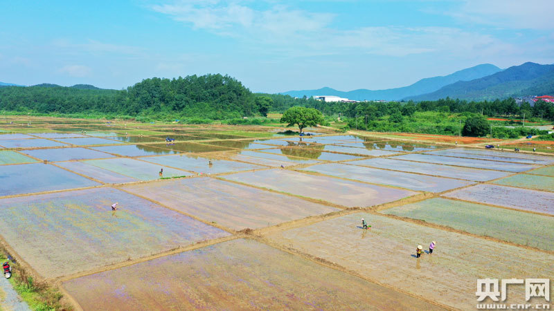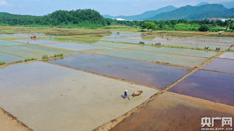 6月11日,吉水縣烏江鎮(zhèn)楓坪村千畝稻油輪作基地一片忙綠,油菜收割后,村民正抓緊晴好天氣耕地、施肥、栽種中稻。