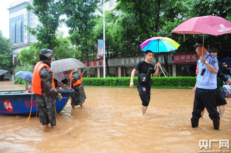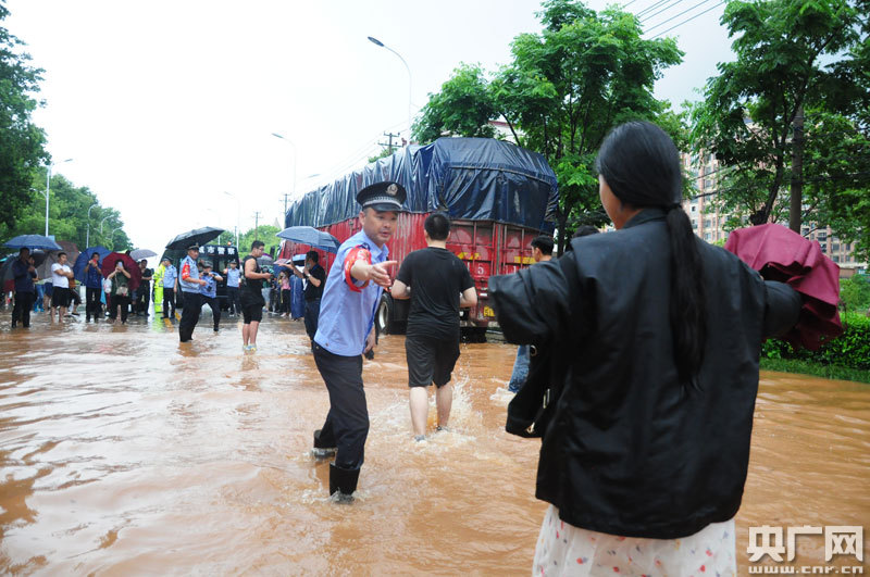同一時間,接景德鎮(zhèn)昌江一中考務辦求助,景德鎮(zhèn)市公安局城警支隊前往古城路和瓷都大道交界點接力防汛沖鋒舟,利用警車涉水分批將30余名被困錦繡天成小區(qū)考生送至昌江一中考點,最后一名考生于9點14分趕到考場。