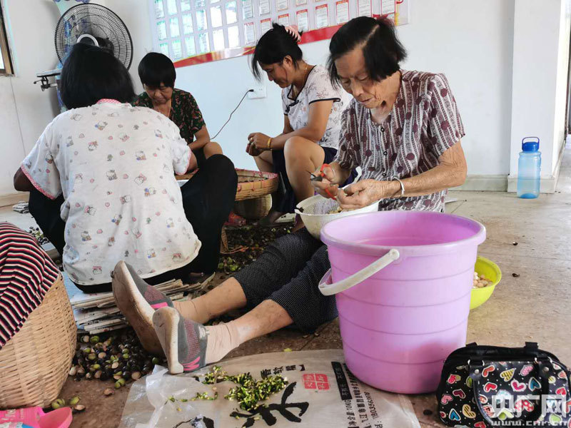 參與這項(xiàng)工作的村民,多數(shù)是村里的留守老人和婦女。今年村里的荷塘迎來(lái)豐收,蓮子采摘、加工需要?jiǎng)趧?dòng)力,不少村民看上了這個(gè)增加收入的機(jī)會(huì)!皠円唤锷徸涌梢再崈蓧K錢,活又不累,比在家閑坐強(qiáng)多了!壁w雪玉嫻熟地剪開(kāi)一顆蓮子,把中間翠綠色的蓮芯取下來(lái)。她對(duì)務(wù)工所得表示很滿意。