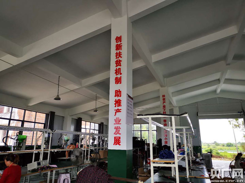 扶貧車間內(nèi),五六臺(tái)生產(chǎn)線整齊排列,40多名工友坐在臺(tái)前有序操作(央廣網(wǎng)發(fā) 通訊員提供)