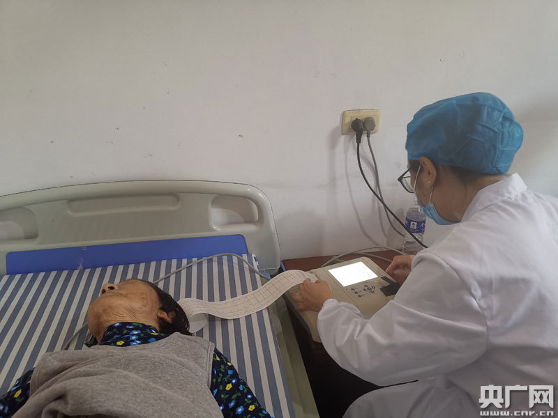 醫(yī)護人員幫群眾做心電圖檢查(央廣網(wǎng)發(fā) 通訊員供圖)