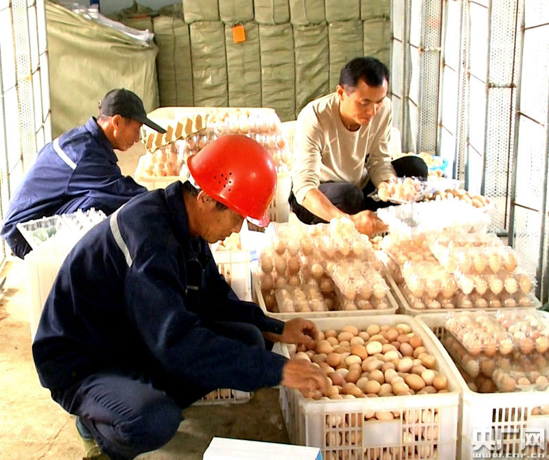 湖口縣楊山村扶貧基地工作人員正在打包雞蛋(央廣網(wǎng)發(fā) 通訊員供圖)