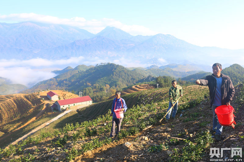白茶基地務(wù)工的村民們正在為茶苗進(jìn)行松土施肥(央廣網(wǎng) 通訊員白靈 攝)