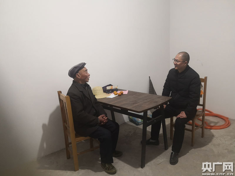熊彪在五保戶老人吳行清的新房子溝通交流(央廣網(wǎng)發(fā) 通訊員供圖)