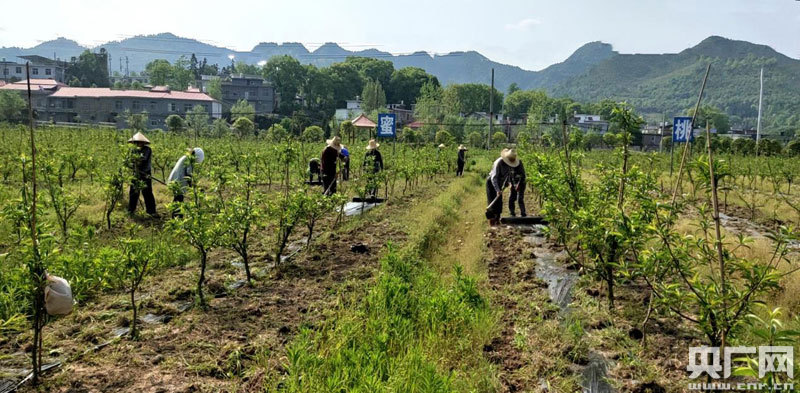 農(nóng)戶在秋雪蜜桃產(chǎn)業(yè)扶貧基地勞作(央廣網(wǎng)發(fā) 通訊員供圖)