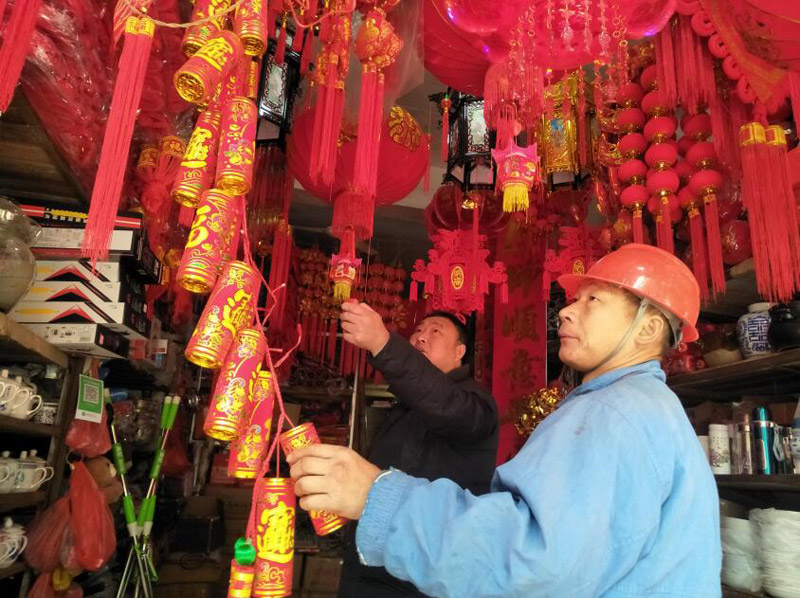 1月29日,農(nóng)歷臘月二十四是南方的小年,江西省浮梁縣城到處張燈結(jié)彩,處處是濃濃的年味,圖為一顧客正在電子鞭炮。由于近年來禁止燃放鞭炮,這種安全、噪音小、無污染的電子鞭炮受到老百姓的青睞