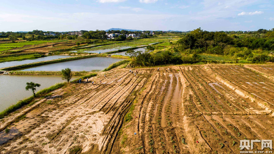 8月26日,湖口縣城山鎮(zhèn)團(tuán)墩村產(chǎn)業(yè)扶貧基地,村民正在抽水灌溉南瓜苗。(央廣網(wǎng)發(fā) 通訊員李學(xué)華攝)