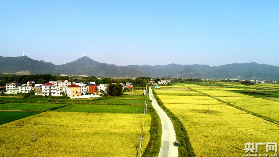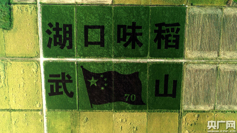 央廣網(wǎng)湖口9月18日消息(記者鄧玉玲 通訊員鄭飛華)9月17日,湖口縣武山鎮(zhèn)武前村金黃稻浪層層疊疊,從高空俯瞰,猶如“大地染金”,與稻田里的巨幅書畫、秀美的山川、美麗的村莊相映成趣,點(diǎn)綴著秋收的大地,美不勝收。