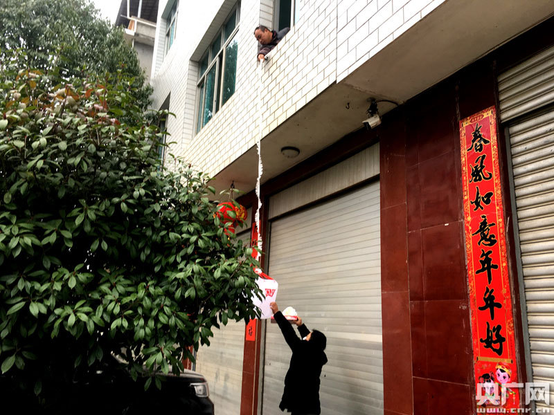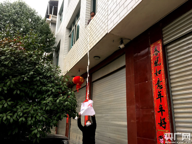 央廣網(wǎng)靖安2月4日消息(記者胡嘯 通訊員唐詩(shī)文)2月3日,江西省靖安縣雙溪鎮(zhèn)河北村會(huì)計(jì)吳春生將代購(gòu)的生活用品綁在步繩的一頭,武漢返鄉(xiāng)人員陳某拉著另一頭,將物資從窗口吊上二樓家中。作為陳某的監(jiān)管干部,吳春生每天幫其采購(gòu)物資、倒垃圾,帶領(lǐng)醫(yī)護(hù)人員為陳某家測(cè)量體溫。