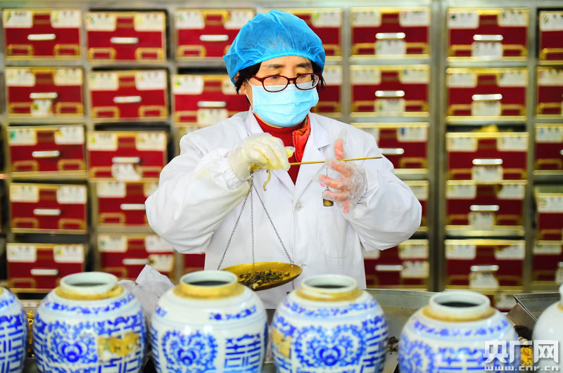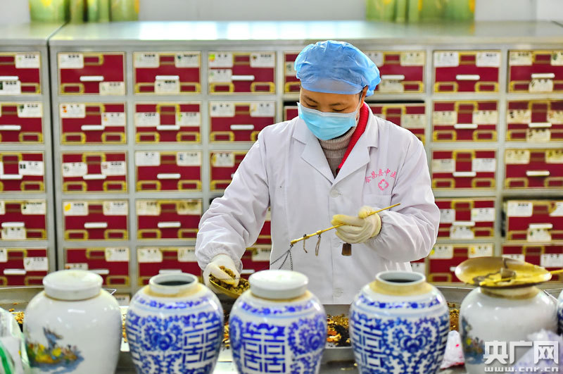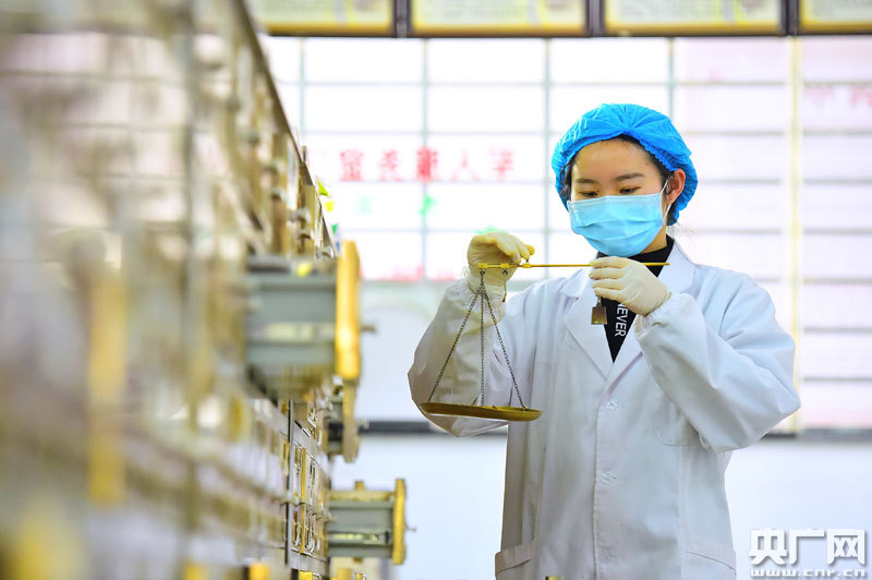 央廣網(wǎng)會昌2月20日消息(記者胡斐 通訊員朱海鵬)2020年2月20日,江西省贛州市會昌縣中醫(yī)院配藥房,藥師正在配藥。