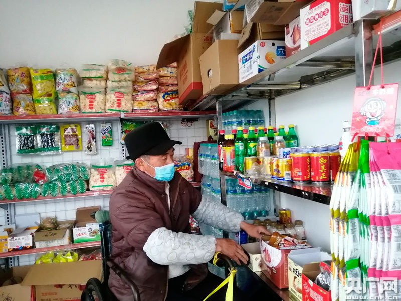 貧困戶胡建華正在打理小賣鋪