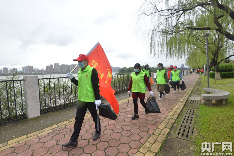 志愿者們身穿紅馬甲、戴紅帽,舉著隊旗,邁著整齊的步伐來到贛江河邊,沿途查看了河道綠化、保潔情況。志愿者用手中的火鉗、垃圾袋等工具對河邊白色垃圾、煙頭、廢舊物等垃圾進行清理。