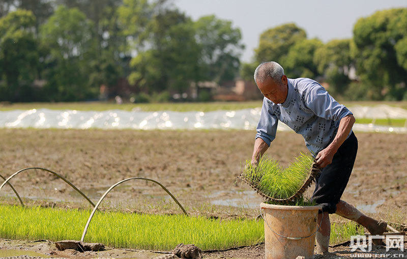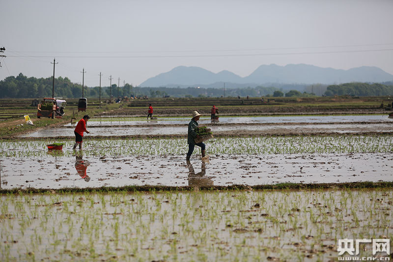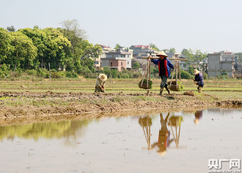 4月9日,江西省吉安市吉水縣丁江鎮(zhèn)塘邊村高標(biāo)準(zhǔn)農(nóng)田建設(shè)區(qū),村民正在起收秧苗