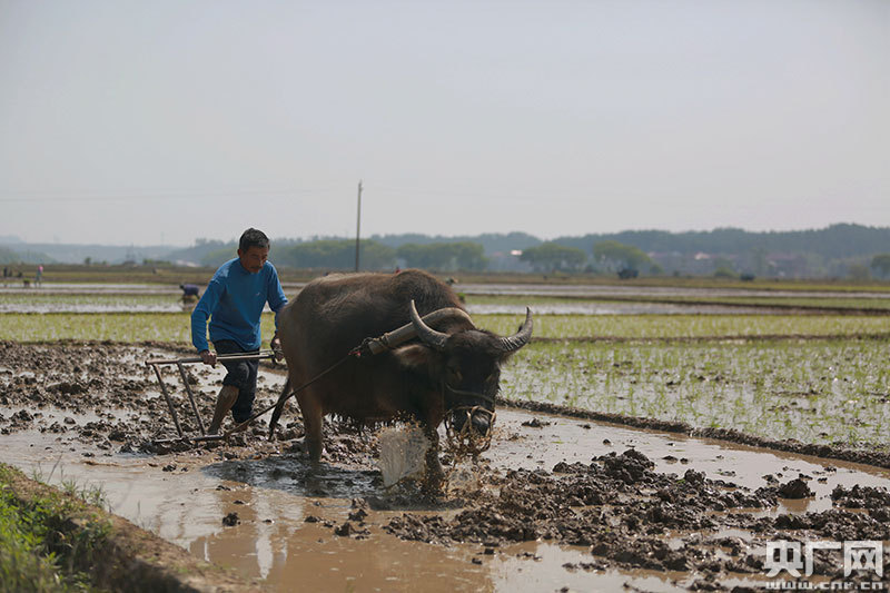 4月9日,江西省吉安市吉水縣丁江鎮(zhèn)塘邊村高標(biāo)準(zhǔn)農(nóng)田建設(shè)區(qū),村民正在耕田
