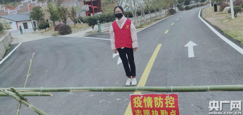 貧困戶喻霞在清溪村小組疫情防控點(diǎn)參加志愿者服務(wù)