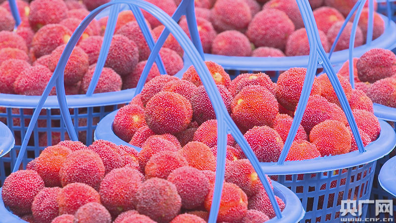 游客陶玲:這邊的楊梅非常好吃,汁多飽滿,非常甜。