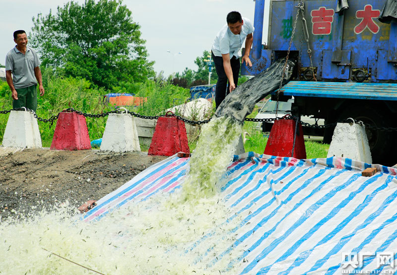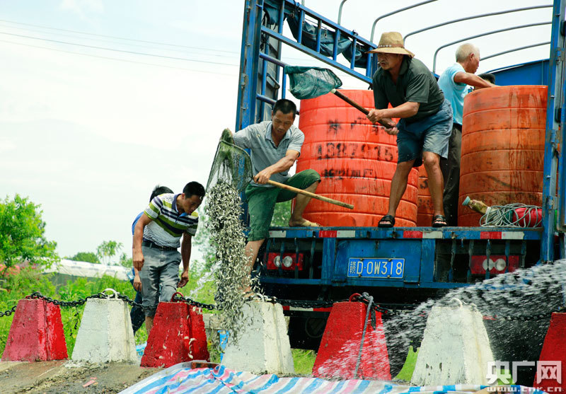 泰和縣在贛江南門碼頭投放青魚、草魚、鰱魚、鳙魚等苗種近500萬尾