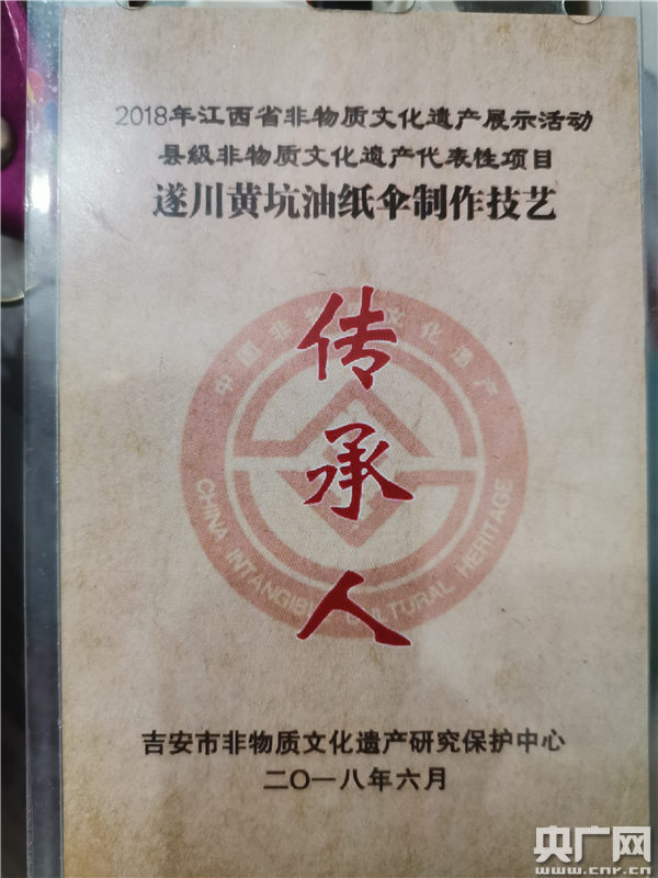 央廣網(wǎng)遂川10月4日消息(記者胡斐 通訊員劉祖剛)在吉安市廬陵人文谷展出了三天后,10月3日晚,遂川縣黃坑鄉(xiāng)油紙傘非遺傳人胡海華驅(qū)車回到了位于井岡山市天街的工作室。