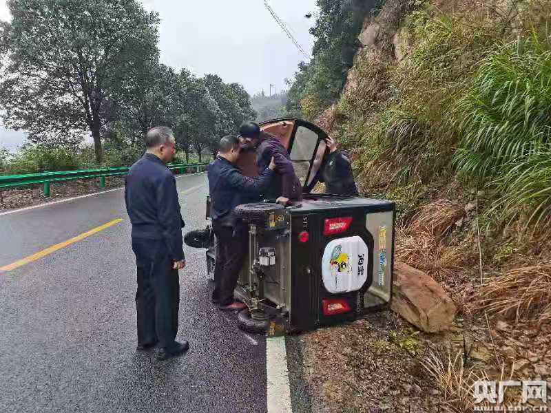 11月26日上午9點40分左右,萬安縣委宣傳部干部邱哲、郭立和退休老干部耿艷鵬乘車前往該縣澗田鄉(xiāng)開展扶貧和“紅色名村”建設工作,當車子行駛至蕉源水庫附近時,一輛三輪電動車側(cè)翻在路邊,眼尖的邱哲一眼就看到有個老人在車里掙扎,但卻爬不出來!摆s快停車救人!”邱哲和同事們急忙把車停在路邊,下車救人。迅速來到三輪車旁,幫助打開車門,小心翼翼地把老人扶出駕駛室,詢問老人是否受傷,并撥打了110和120,呼叫交警和醫(yī)護人員趕赴現(xiàn)場。