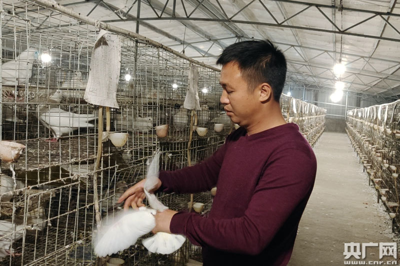 易小樂察看鴿子長勢情況(央廣網(wǎng)發(fā) 通訊員供圖)