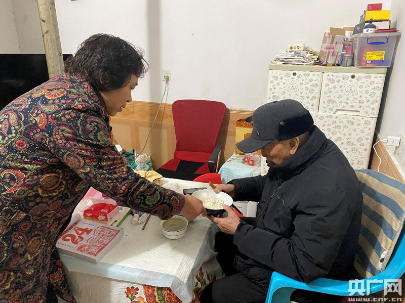 袁小萍耐心細致地照顧父親起居(央廣網(wǎng)發(fā) 通訊員供圖)
