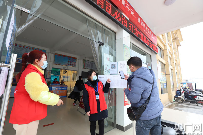 汽車站志愿者引導乘客掃碼出入(央廣網(wǎng)發(fā) 通訊員供圖)