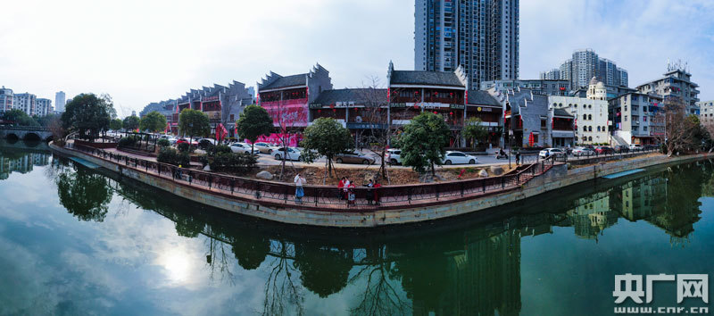 游人在改造后的社區(qū)河邊旅游打卡(央廣網(wǎng)發(fā) 通訊員李軍 攝)
