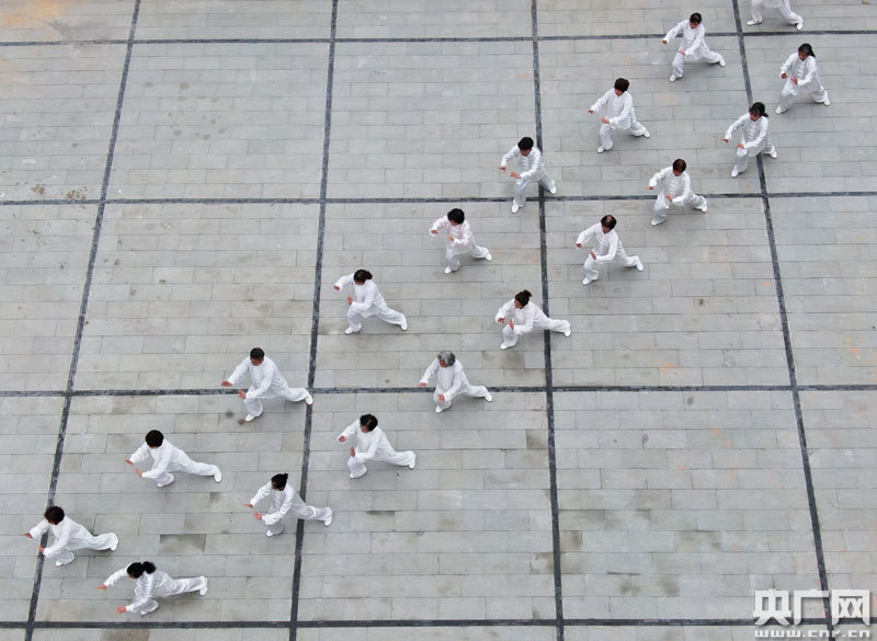 該社區(qū)太極拳愛好者們在新建的廣場上運動(央廣網(wǎng)發(fā) 通訊員李軍 攝)