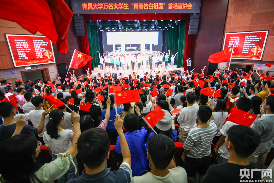央廣網(wǎng)南昌9月3日消息(記者王一凡 通訊員許航)“青春告白祖國,我們肩負著實現(xiàn)中華民族偉大復興的重任!”“在最美好的青春年華,我們用專業(yè)知識和實際行動建功新時代,向祖國告白!”9月3日上午,南昌大學萬名大學生“青春告白祖國”首場宣講會在音樂廳舉行,500余名學生代表以昂揚的青春面貌慶祝新中國成立70周年。
