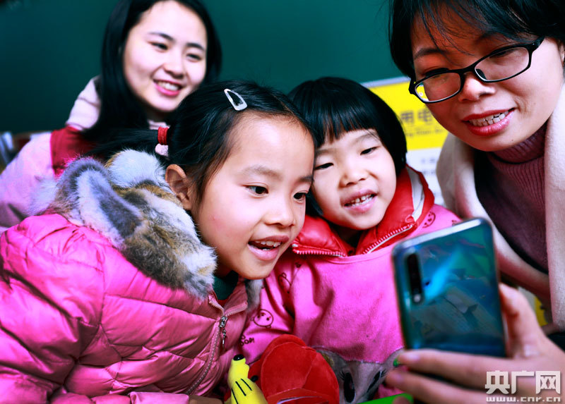 在志愿者的陪護(hù)下,留守兒童與在外打工的父母進(jìn)行視頻通話(通訊員司馬天民/攝)