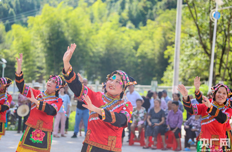 8月18日,江西泰和縣水槎鄉(xiāng)畬族村村民正在跳民族舞蹈(央廣網(wǎng)發(fā) 通訊員司馬天民 攝)