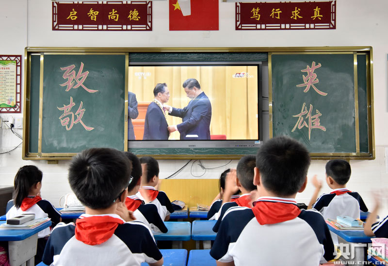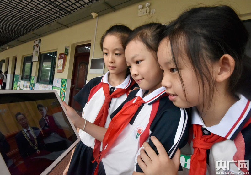 該區(qū)韶山路小學孩子們正在觀看大會(央廣網(wǎng)發(fā) 通訊員李軍 攝)