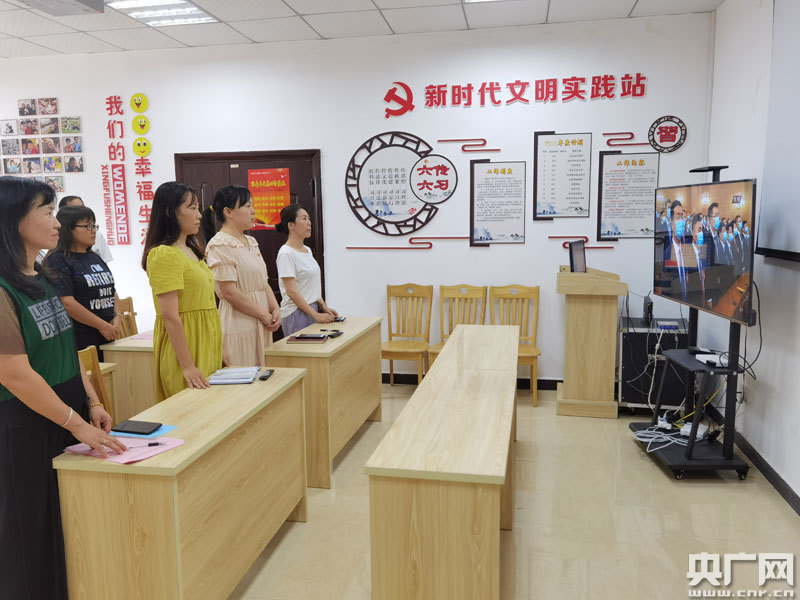 該區(qū)古南鎮(zhèn)街道組織機關干部和居民群眾正在觀看大會(央廣網(wǎng)發(fā) 通訊員楊璐 攝)