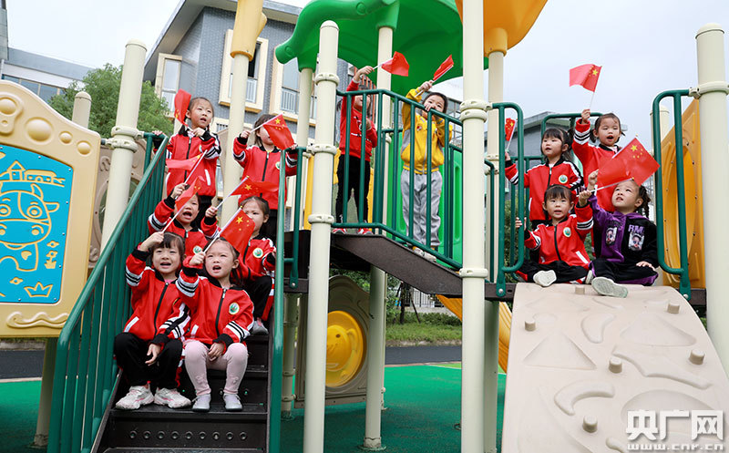 小朋友們手舞國旗,歡唱《祖國祖國我愛你》(央廣網(wǎng)發(fā) 通訊員廖敏 攝)